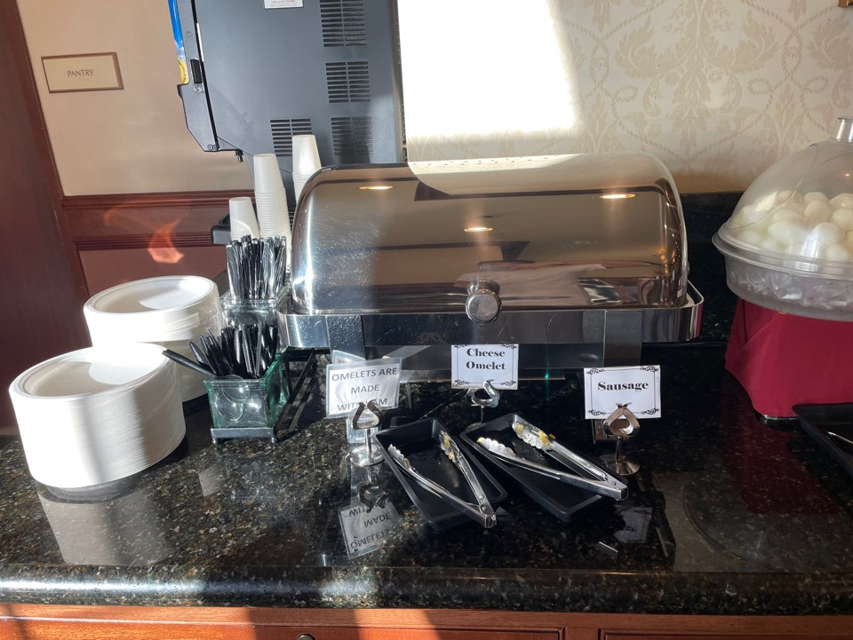 베이 랜딩 호텔의 아침 조식은 종류가 많지 않다.