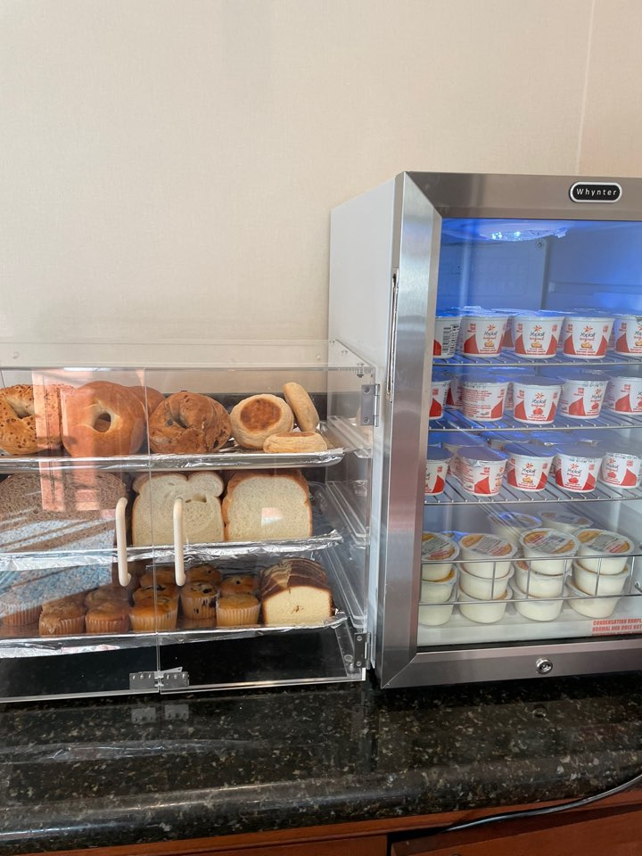 작은 냉장고, 전자레인지, 커피포트, 컵이 구비되어 있다. 커피포트는 드립커피를 내리는 용도이기 때문에 물 끓이는 용도로 사용할 수 없다.