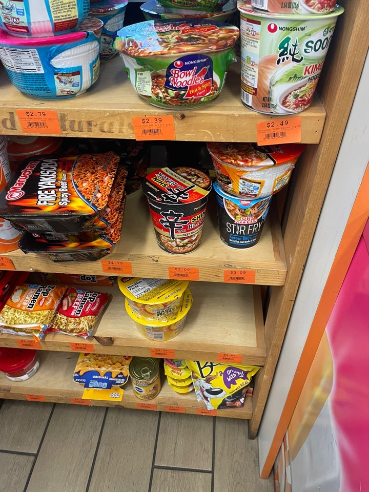 사과 1개에 99센트였다. 컵라면은 $2.39였다.