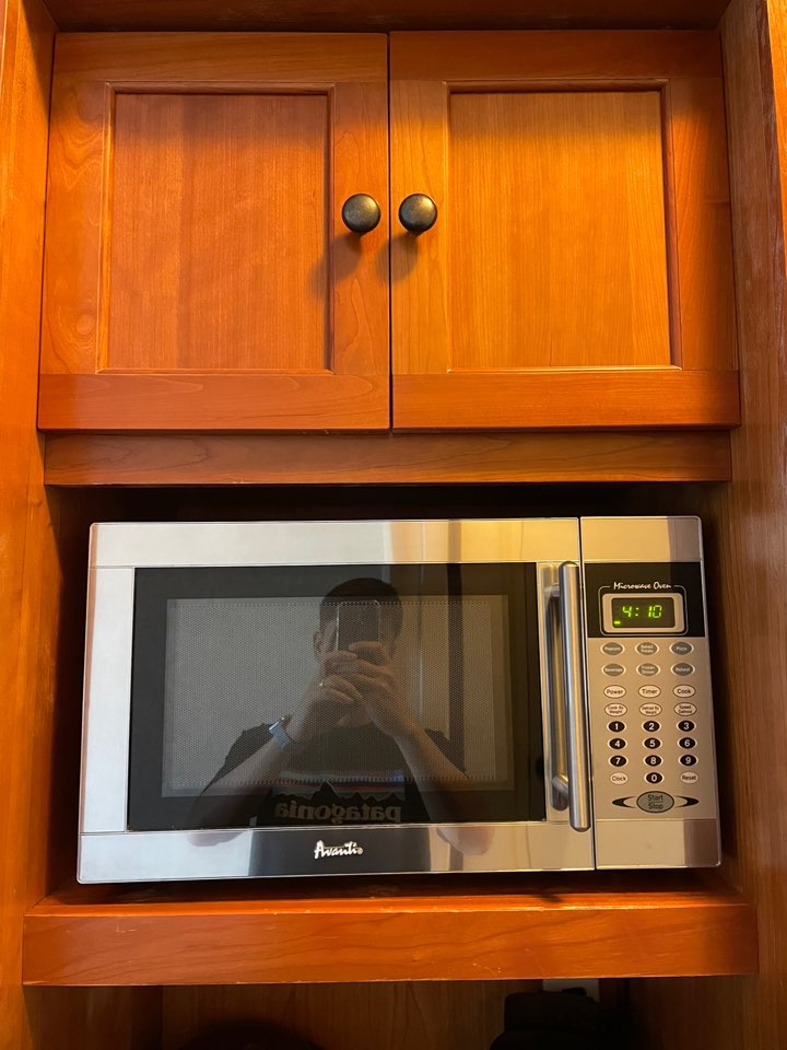 전자레인지는 잘 작동한다. 우리는 햇반을 전자레인지에 돌려 먹었다.