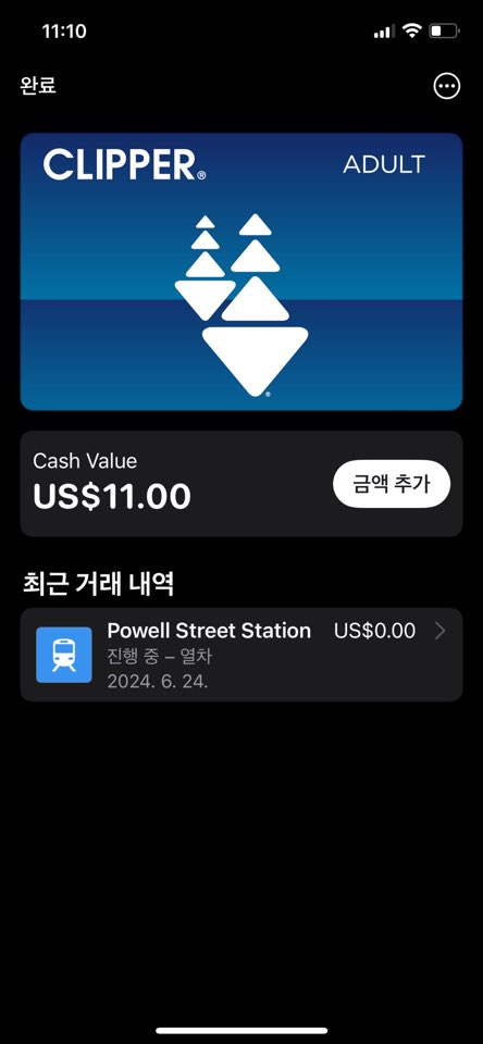 미국여행을 하면서 느낀 것은 "애플 주식을 사야겠다!"라는 것이다. ^^ 클리퍼 카드도 별도 구매 없이 아이폰 지갑 어플에서 추가하여 충전하면 간단하게 이용이 가능하다. 애플의 생태계는 대단한 것 같다. 우리 가족은 중 나는 애플 폰과 제품을 쓰고 아내와 아이는 안드로이드 폰을 쓴다. 구글의 생태계도 애플처럼 웬만한 것은 연동되지만, 애플을 따라오진 못한 것 같다. 또한 미국이라는 엄청난 내수시장을 확보하였다는 점에서도 지속가능한 기업 같다(잠시.. 딴 소리).